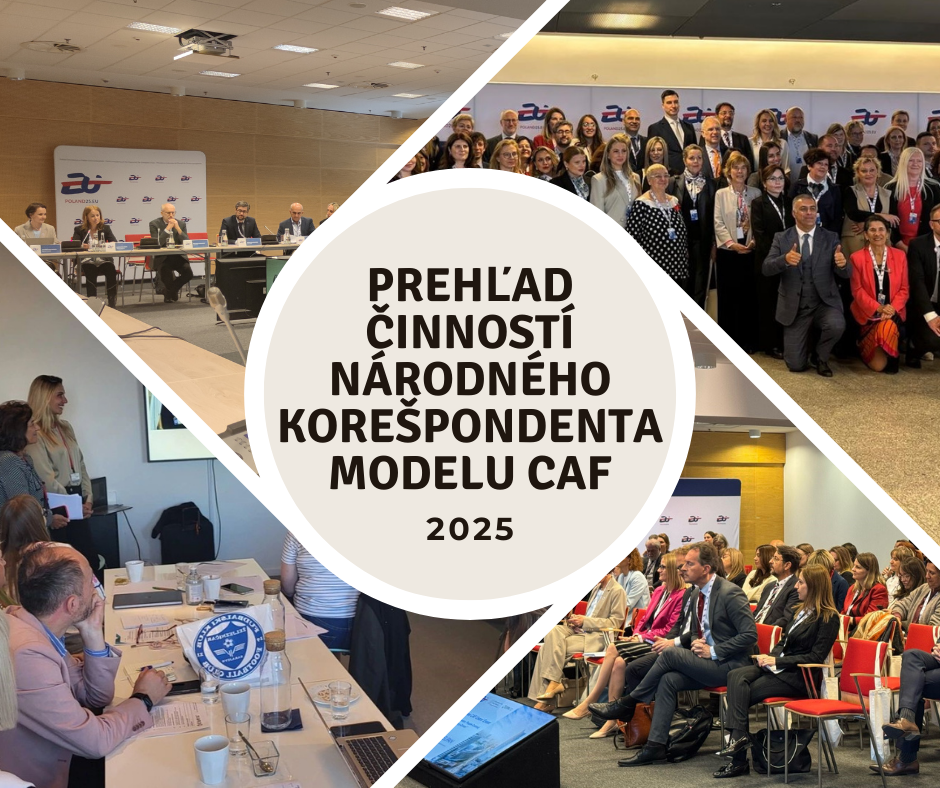 Prehľad činností národného korešpondenta modelu CAF za rok 2025 Dátum 16.12.2025 Autor ÚNMS SR Model CAF je európsky nástroj zlepšovania organizácií verejnej správy. Národní korešpondenti modelu CAF zabezpečujú spoluprácu medzi krajinami, zdieľanie skúseností a podporujú jeho ďalší rozvoj. Prinášame stručný prehľad najdôležitejších aktivít v roku 2025. Kľúčové stretnutia národných korešpondentov V roku 2025 sa uskutočnili dve pracovné stretnutia národných korešpondentov modelu CAF, ktoré sa konali v krajinách predsedajúcich Rade Európskej únie podľa rotačného princípu: 11. apríla 2025 – Varšava (poľské predsedníctvo), 1. októbra 2025 – Kodaň (dánske predsedníctvo, hybridne). Diskusie sa zamerali najmä na budúcnosť modelu CAF, výzvy implementácie modelu CAF (nedostatok kapacít a zdrojov), ako aj na potrebu zjednodušovania a podporu digitalizácie. 10. európske stretnutie používateľov modelu CAF Dňa 10. apríla 2025 sa vo Varšave konalo jubilejné 10. európske stretnutie používateľov modelu CAF s účasťou viac ako 130 zástupcov verejnej správy. Hlavným bodom programu boli prezentácie „Golden 18“ – vybraných príkladov dobrej praxe z 13 európskych krajín. Slovenská delegácia (ÚNMS SR a mesto Nitra) sa aktívne zapojila do odborných diskusií. CAF Education 2024 Dňa 15. januára 2025 bola na webovom sídle EIPA publikovaná nová verzia príručky CAF Education 2024, určenej pre vzdelávacie inštitúcie. Príručka je dostupná aj v slovenskom preklade na webovom sídle ÚNMS SR. V nadväznosti na jej publikovanie ÚNMS SR ako národný korešpondent modelu CAF podporil jej implementáciu prostredníctvom online seminára „Predstavenie CAF Education – Model CAF pre vzdelávacie inštitúcie“, ktorý sa uskutočnil 18. februára 2025 CAF Excellence Recognition (CER) V roku 2025 bol spustený revidovaný proces externej spätnej väzby CAF Excellence Recognition (CER). Dňa 15. júna 2025 bola príručka CER publikovaná na webovej stránke Európskeho inštitútu pre verejnú správu (EIPA), čím sa začalo prechodné obdobie v trvaní 1,5 roka. Počas tohto obdobia je možné uplatňovať nový proces CER aj pôvodný proces hodnotenia Externej spätnej väzby modelu CAF. Revízia modelu CAF a CAF Update Survey Proces revízie modelu CAF 2020 bol iniciovaný Európskym inštitútom pre verejnú správu (EIPA) v priebehu roka 2025 s cieľom pripraviť jeho aktualizovanú verziu (pracovne označovanú ako CAF 2026). Súčasťou tohto procesu bol online dotazníkový prieskum CAF Update Survey, ktorý sa realizoval v septembri 2025. Do účasti na prieskume boli vyzvaní aj slovenskí používatelia modelu CAF. Výhľad na rok 2026 Na základe realizácie CAF Update Survey je na 20. januára 2026 naplánované online koordinačné stretnutie národných korešpondentov modelu CAF, ktorého cieľom bude diskusia o ďalšom postupe a nasledujúcich krokoch smerujúcich k revízii modelu CAF. Späť